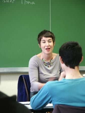 Corinne a ensuite invité Alicia Fertig à partager son expérience du Prix, elle qui n'avait, au départ, pas eu du tout d'inspiration sur le thème 2008, "Couleurs et sons". Grand bien lui a pris de passer l'été 2007 à écrire "1200 mots par jour", comme elle se plait à le rappeler. "Je m'imposais d'écrire tous les jours, sinon, j'aurais eu le double de travail le lendemain". Cet engagement envers elle-même, elle l'a tenu, et la première récompense, c'était d'avoir réussi, d'être allé au bout. Un défi pour elle qui n'écrivait jusqu'alors que des nouvelles ou s'essayait à la BD.