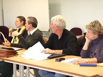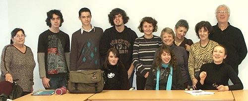 Les principaux acteurs du Prix 1ère Chance à l'Ecriture sont là: M. Jacques SALOME, qu'on ne présente plus, Président d'honneur du Prix cette année, Mme Corinne Lin-Niederhoffer, éditrice à Elan Sud et Présidente de l'association ELU, initiatrice du projet, et Mlle Elise BLOT, lauréate 2009. Sont également présents M.COSMA, proviseur du lycée et son adjointe Mme DUGOUCHET, M. ENJOLRAS, pour MIX, la Radio étudiante, Mme Corinne Renoud-Lias de la librairie "Feuilles des Vignes" de Sainte Cécile les Vignes, Mme Nicole TRINCAL de la bibliothèque de Sainte Cécile les Vignes, ainsi que des journalistes du Dauphiné, de La Provence et de La Marseillaise, quelques membres du corps enseignant, des lycéens, des membres de l'association ELU ayant fait partie du jury adulte lors de la sélection, et les parents et amis de la lauréate.