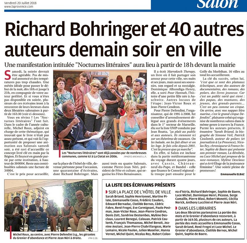 Ci-dessous, l'article de la Provence annonçant la soirée de samedi à Salon-de-Provence