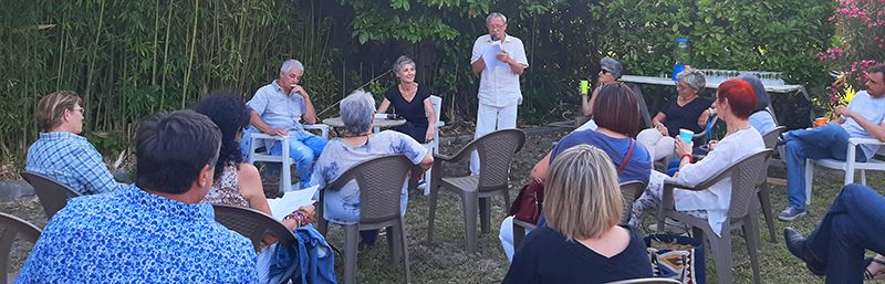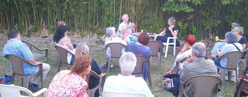 C’est Jean-Philippe Chabrillangeas qui avait demandé à Roxane Bertrand, chercheuse au CNRS & AMU, Laboratoire Parole et Langage à Aix-en-Provence, d’animer la rencontre dans le jardin d’Élan Sud le 26 juin dernier. Il avait apprécié la façon dont elle avait rendu passionnante une table ronde autour du roman policier à l’Antre des livres.