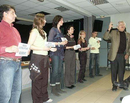 Le temps a filé sans que le public ne relâche son attention. Tout le long de sa conférence, Jacques Salomé s'est amusé à illustrer ses démonstrations avec des personnes issues du public qui, selon les cas, devenaient père, mère, enfant, frère, sœur, problème, question, réponse, faute, conflit. Il n'est pas de ces conférenciers à rester statique derrière un micro à lire un texte répété mille fois. Des petits panneaux venaient aussi fixer certains mots dans notre mémoire.
